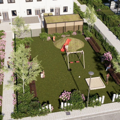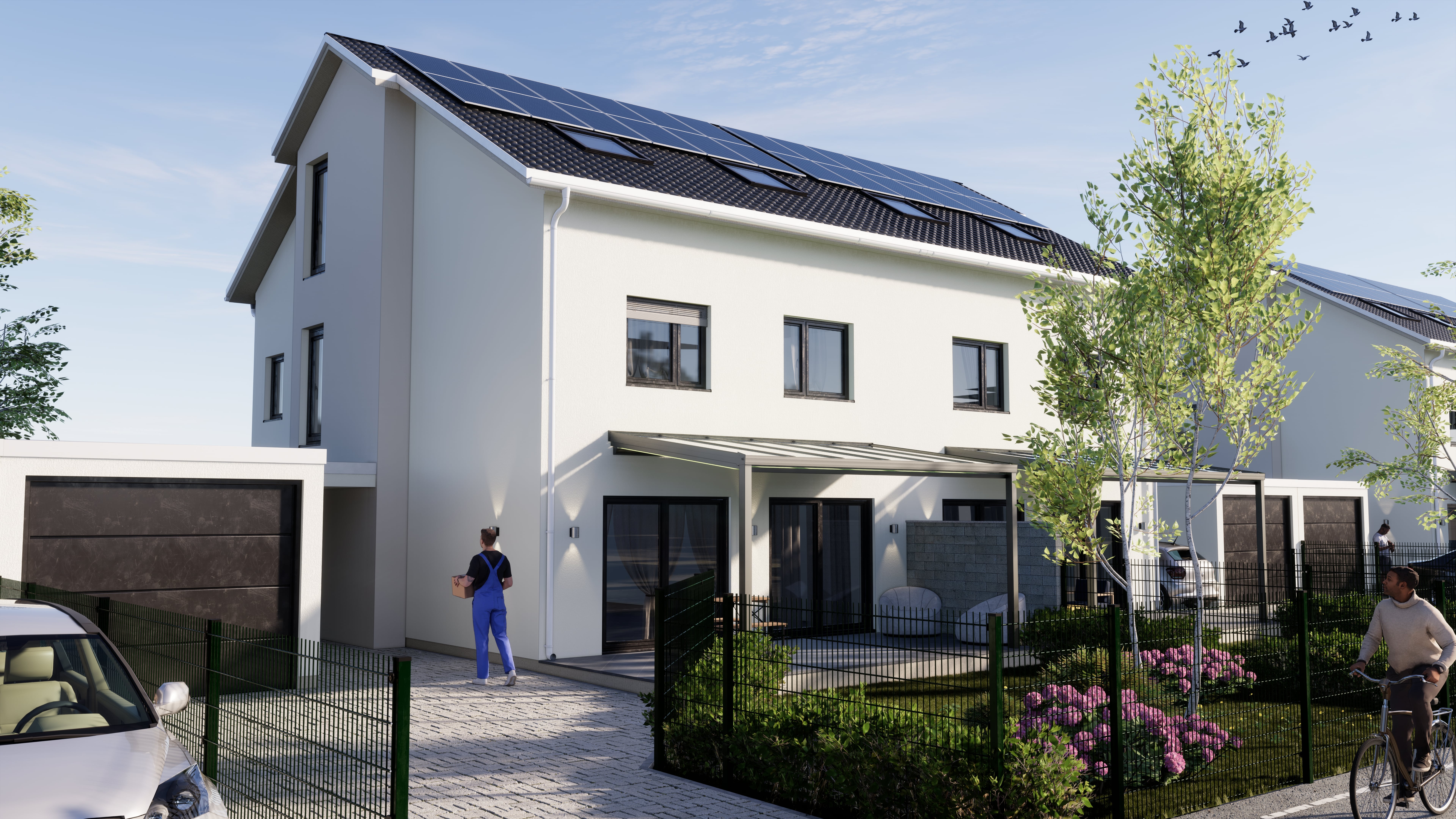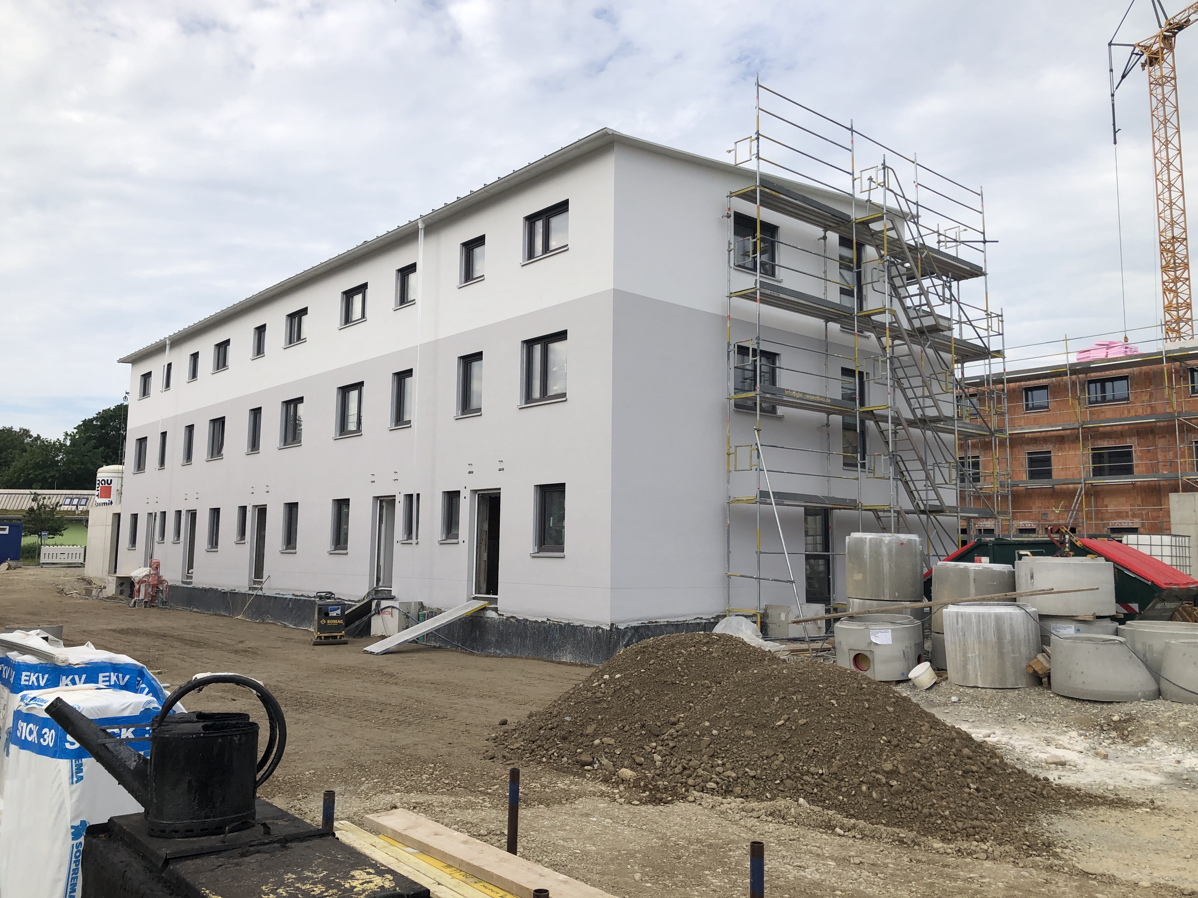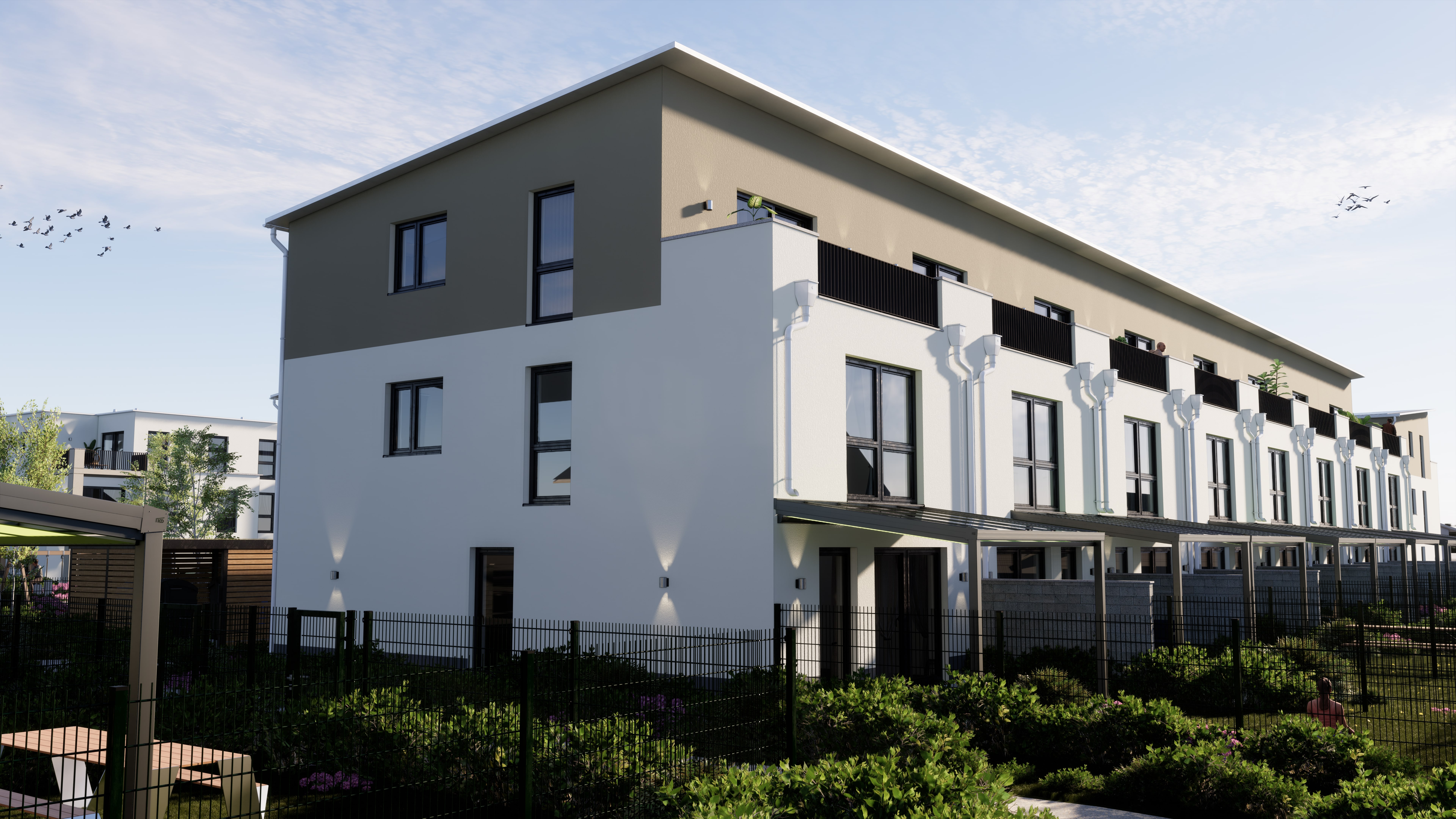 24 Reihenhäuser, 8 Doppelhaushälften und 3 Mehrfamilienhäuser mit insgesamt 86 Wohneinheiten.
