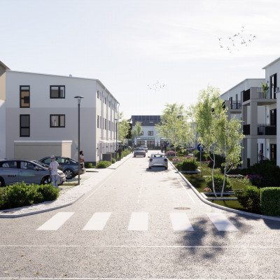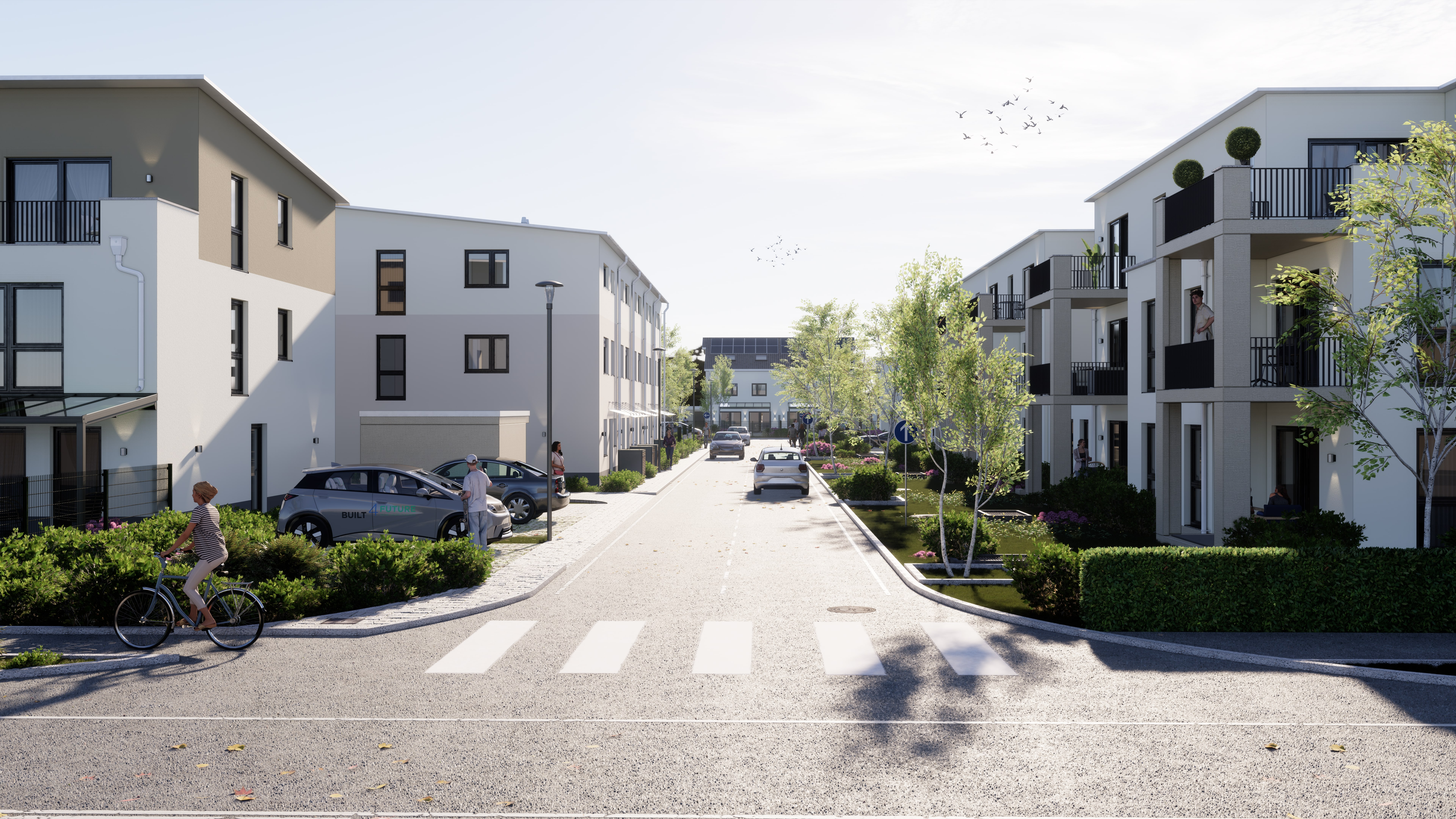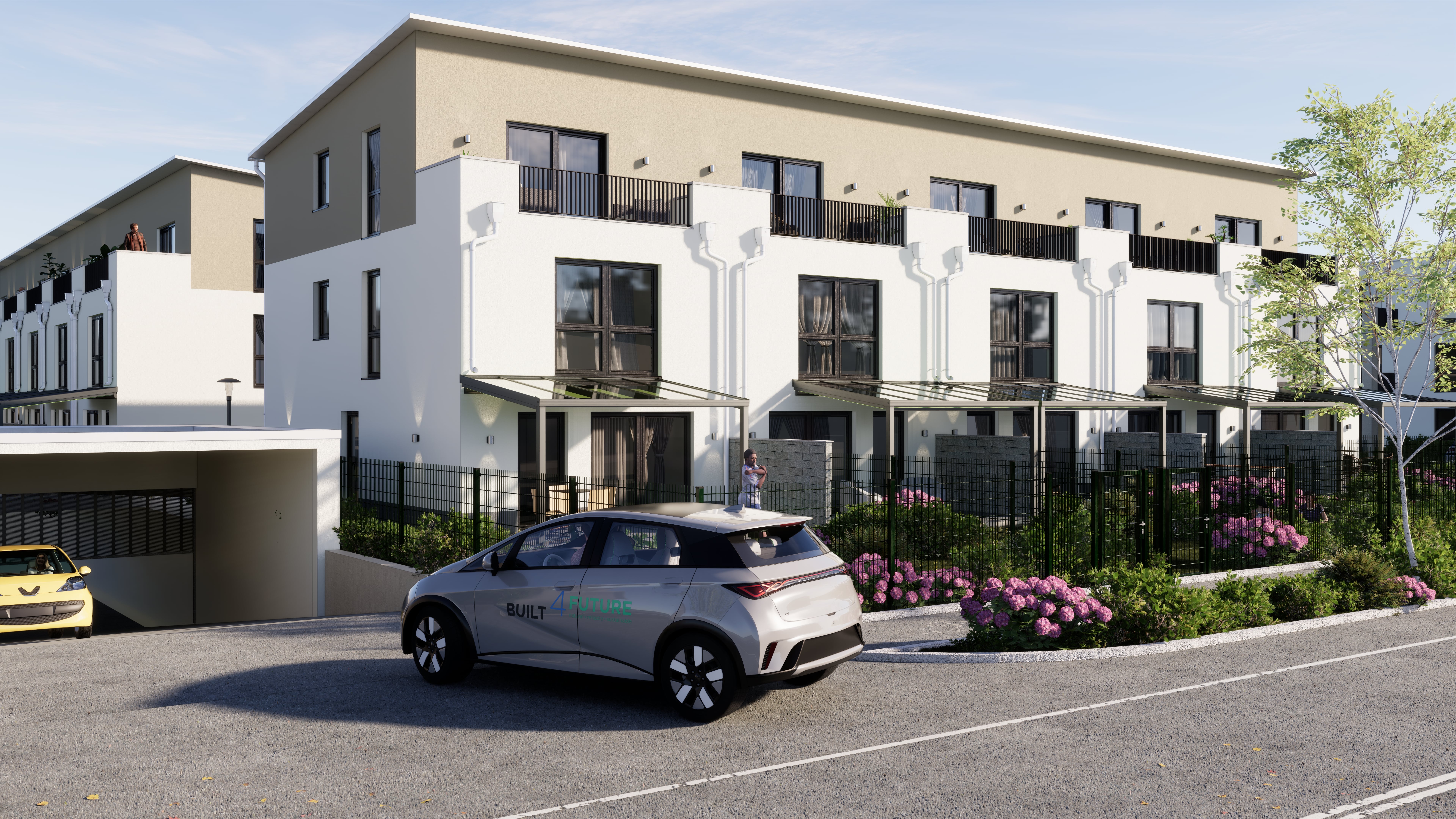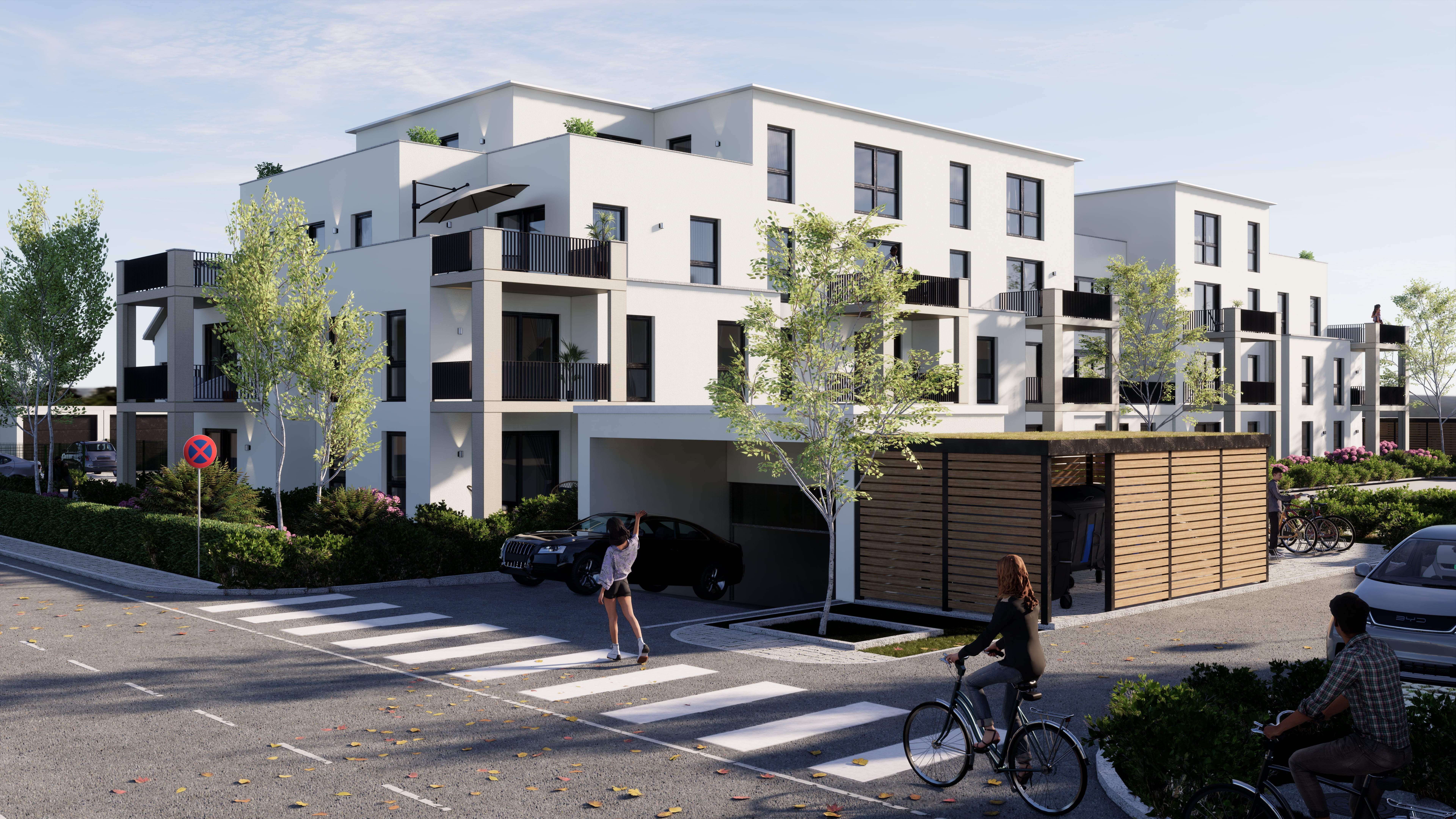Das Quartier ist verkehrsberuhigt mit Parkmöglichkeiten zumeist in gemeinsamen Tiefgaragen mit vorbereiteter Ladeinfrastruktur. Auch ein Quartiersfahrzeug zur gemeinsamen Nutzung steht den Bewohnern zur Verfügung.